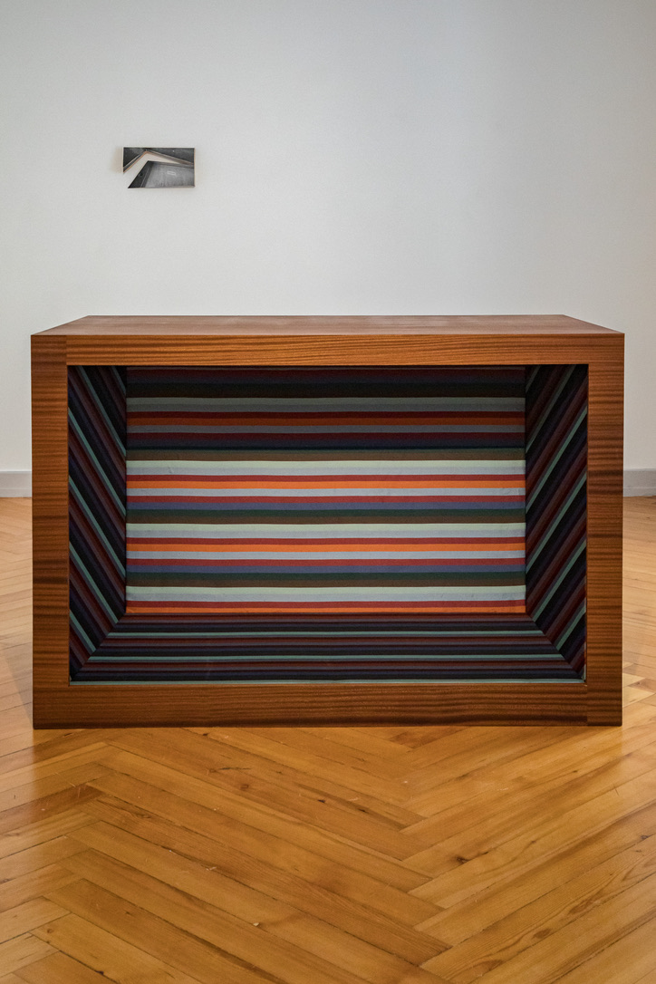 In „Elfen“ stellt Mara Wohnhaas eine Box und einen dazugehörigen Satz in den Ausstellungsraum: What do we want that seduces us.