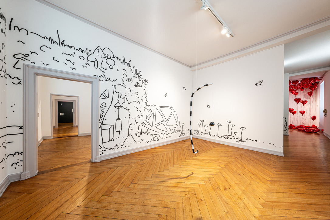 In „Neuen Neue Räume“ werden junge und arrivierte Künstler gezeigt, die sich mit sehr unterschiedlichen Themen befassen: Während Christiana Soulou mit ihren feinen Zeichnungen romantisch Fragen zum Leben stellt, verwandelt Zin Taylor gleich zwei Räume mit Wandarbeiten, einem Mobilé und einer faszinierenden Vitrine in eine Hommage an die bei Heiligenberg gelegene Freundschaftshöhle. Demgegenüber untersucht Carina Brandes mit ihren Fotografien das Verhältnis zwischen Mensch und Natur, während Klara Lidén mit ihrer filmischen Arbeit auf den Existenzialismus im urbanen Kontext verweist. „Neuen Neue Räume“ bietet einen abwechslungsreichen Parcours durch die zeitgenössische Kunst, der für Jung und Alt gleichermaßen bereichernd sein dürfte.